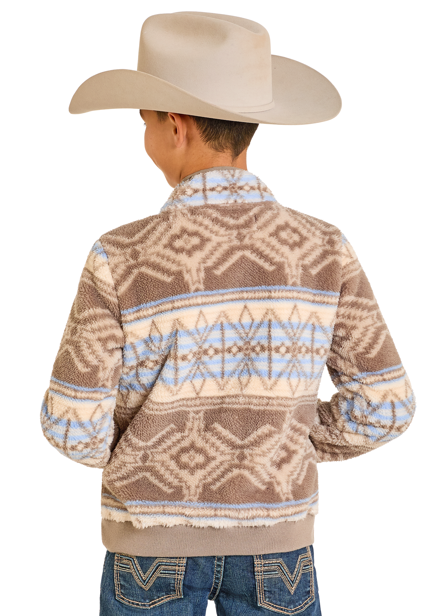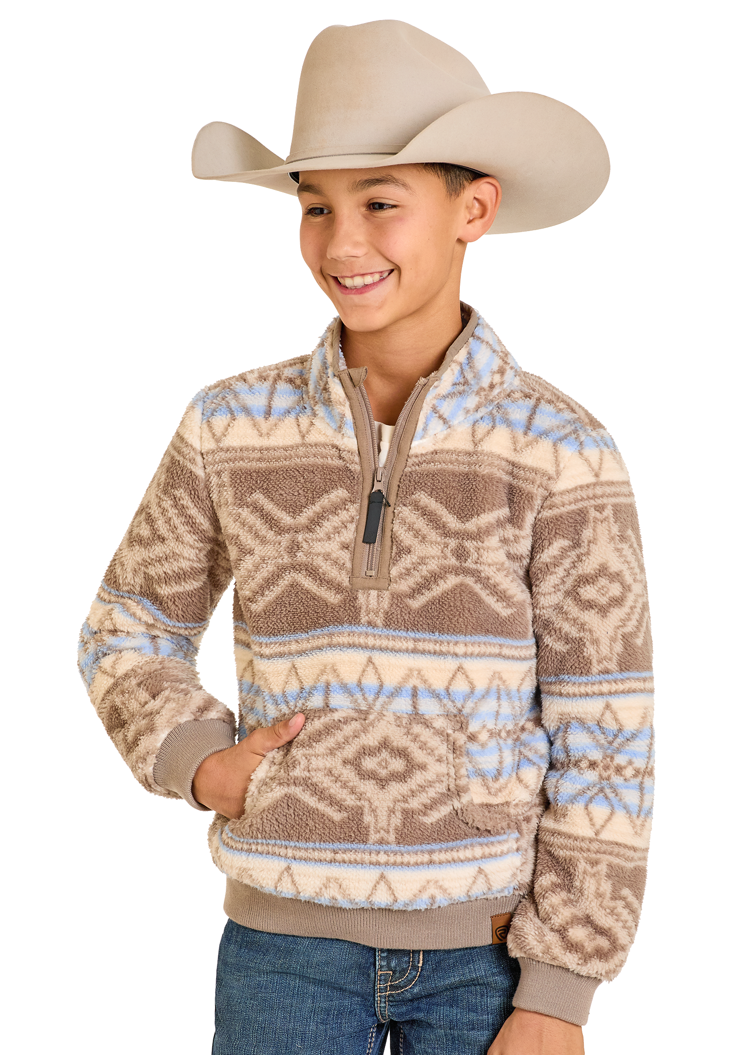 Boys' Tan Aztec Snap Fleece Pullover