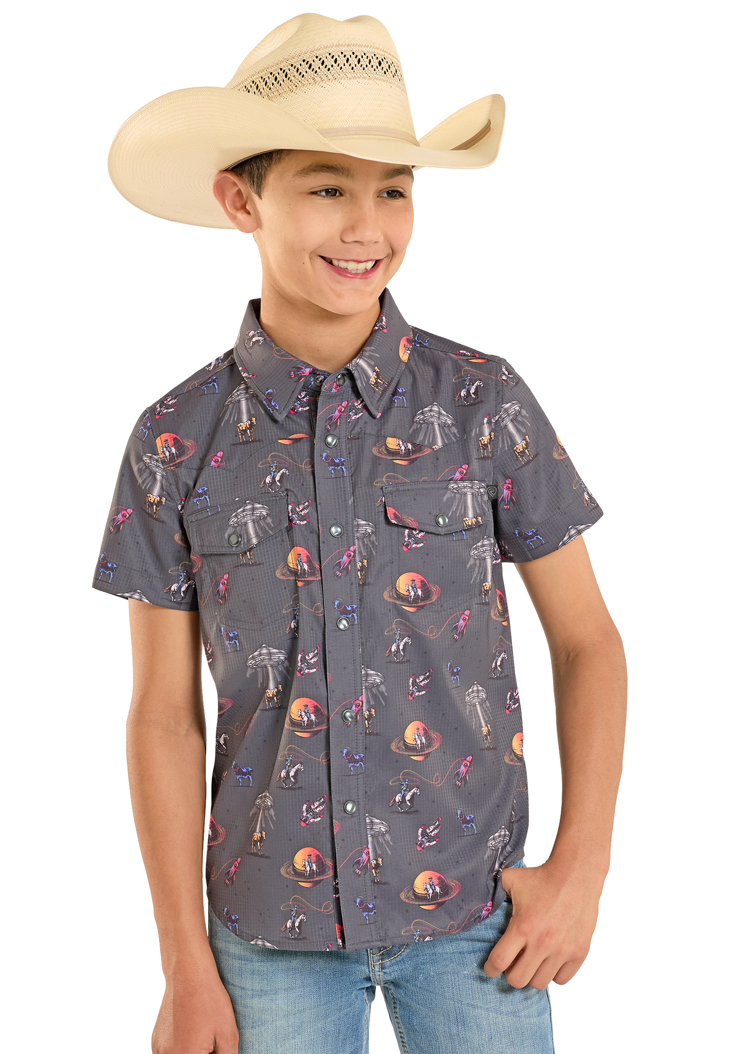Boys' TEK Western Space Cowboy Short Sleeve Shirt