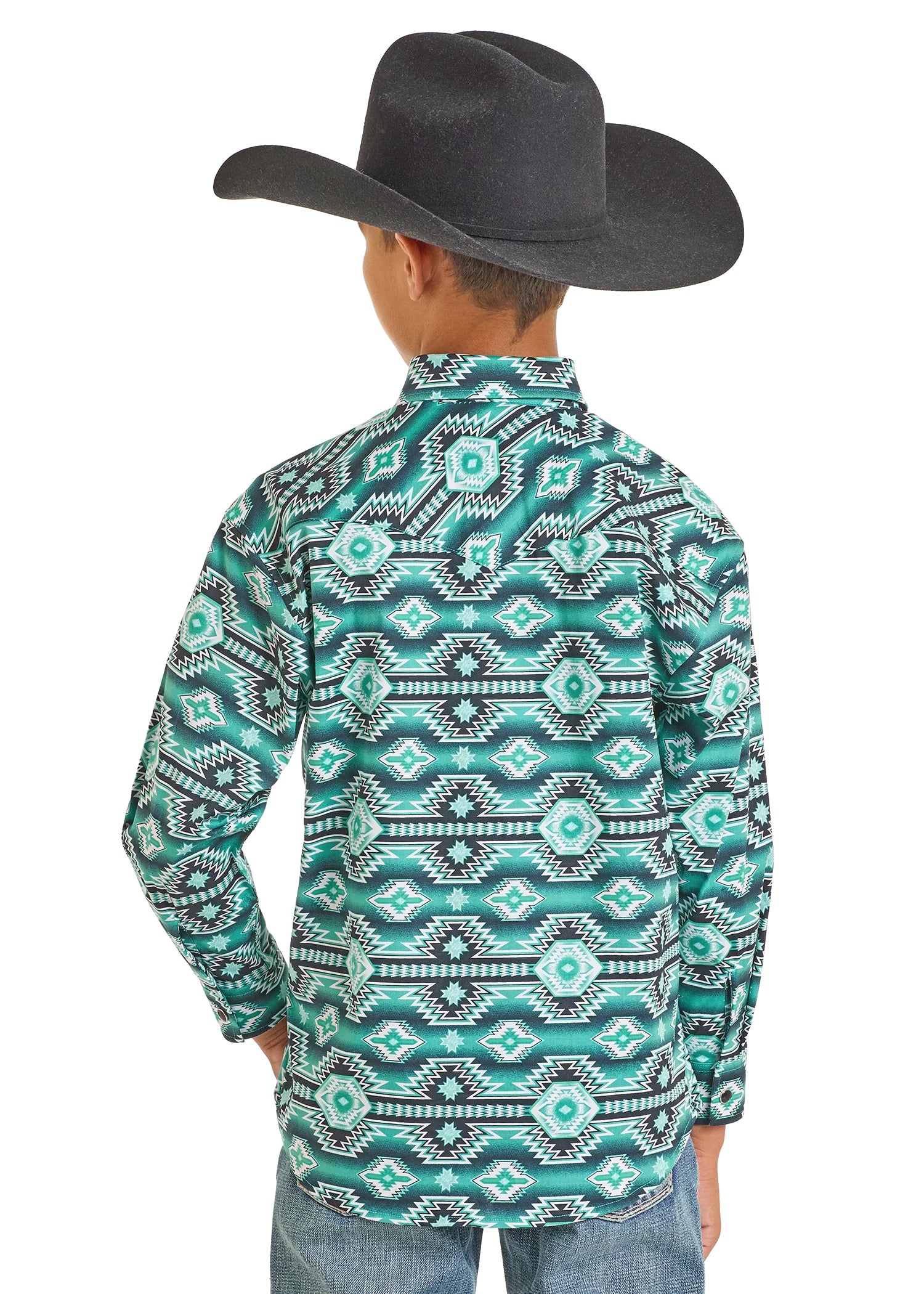 Boys' Jade Aztec Horizontal Print Long Sleeve Snap Shirt