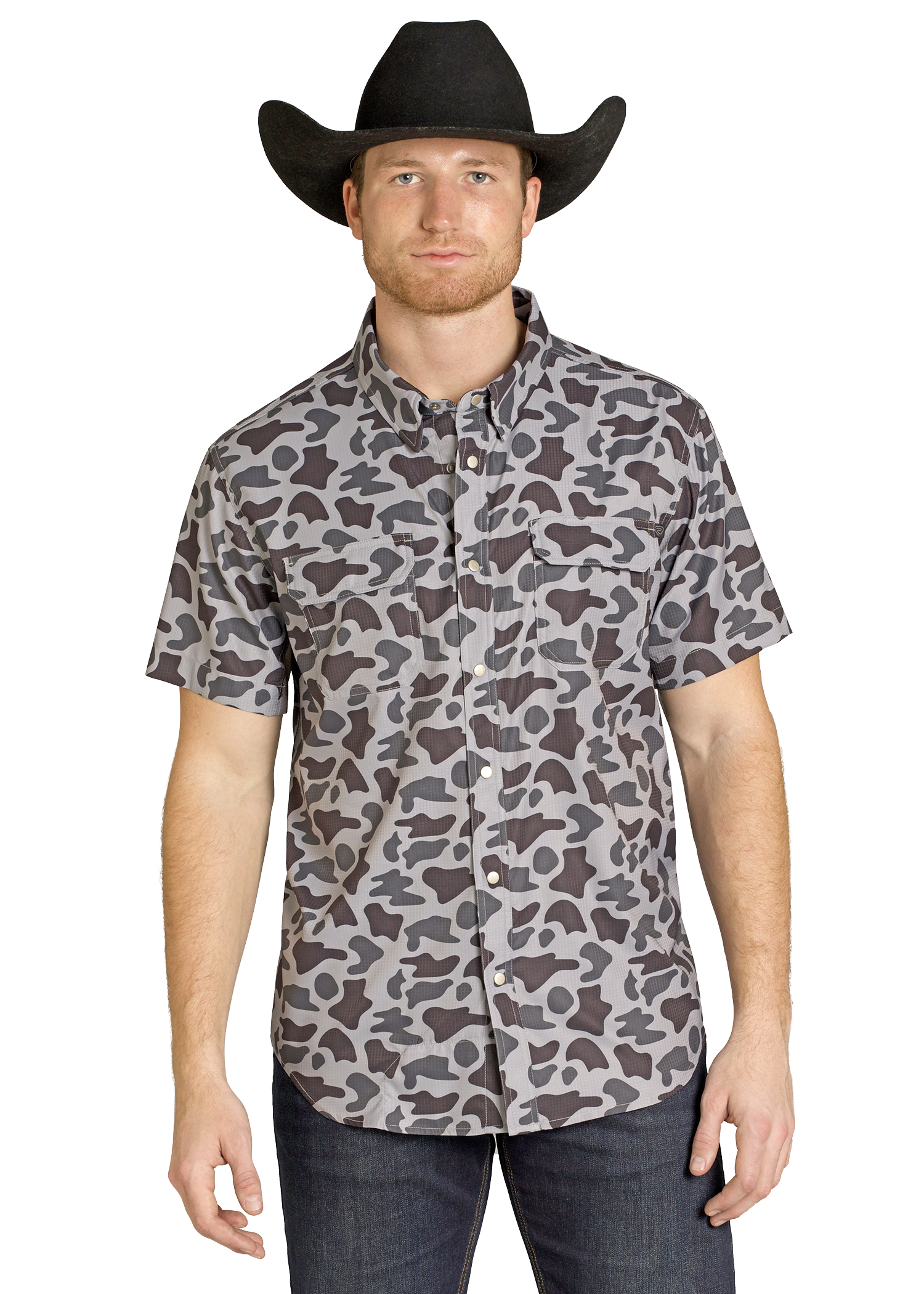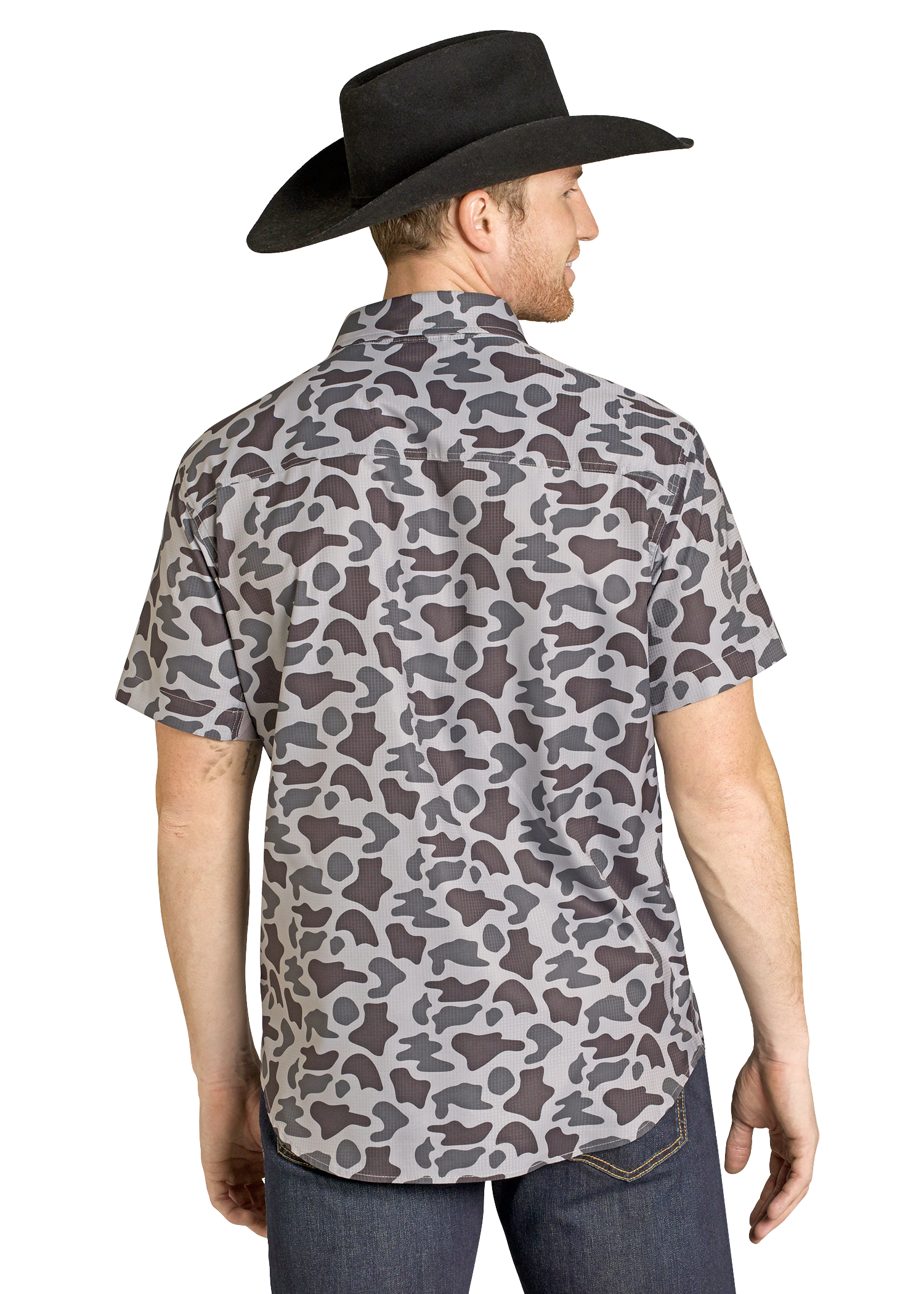 TEK Western Boot Stitch Print Short Sleeve Shirt
