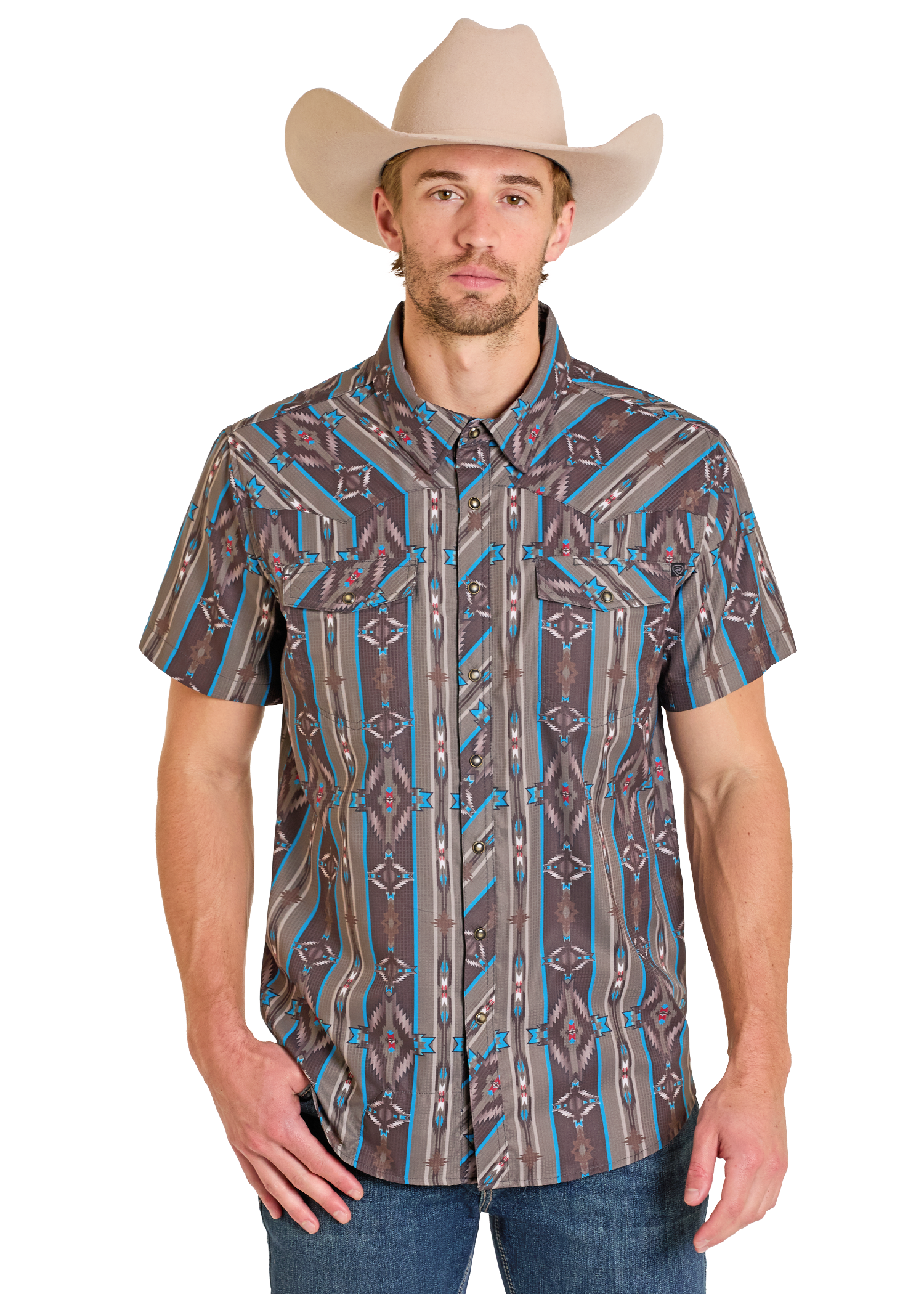 TEK Western Aztec Brown Short Sleeve Shirt