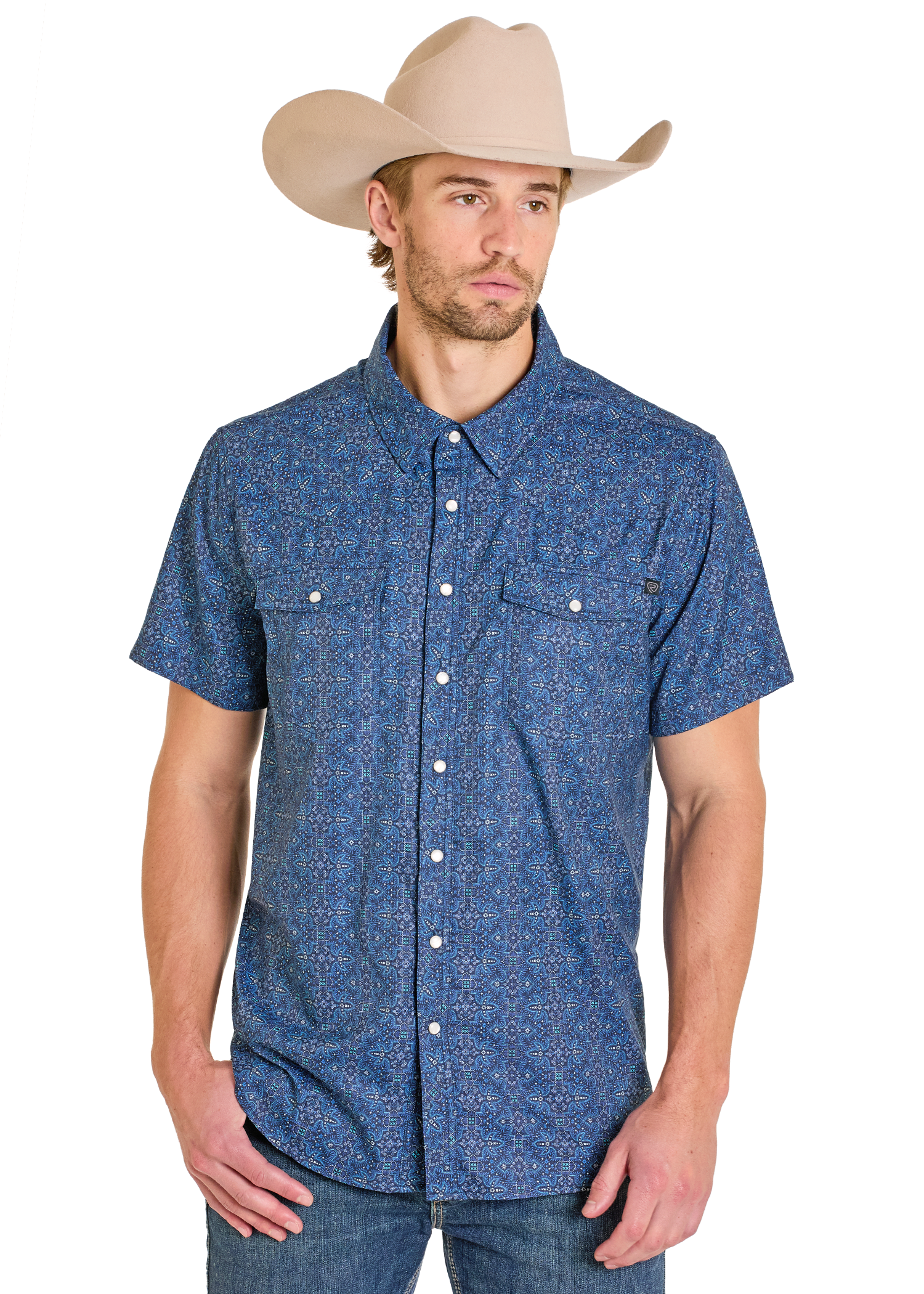 TEK Western Stretch Turquoise Short Sleeve Shirt