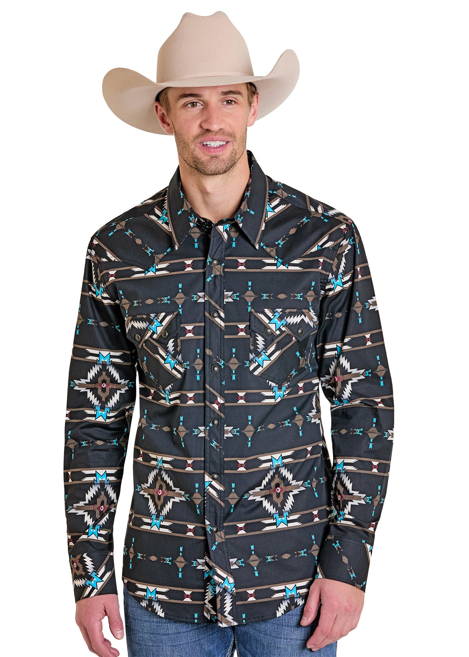 Dale Brisby Black Aztec Long Sleeve Snap Shirt