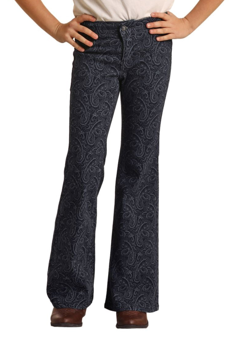 Girls' Paisley Button Flare Jeans
