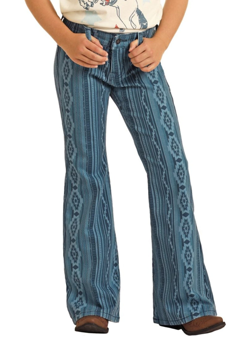 Girls' Aztec Stripe Button Flare Jeans