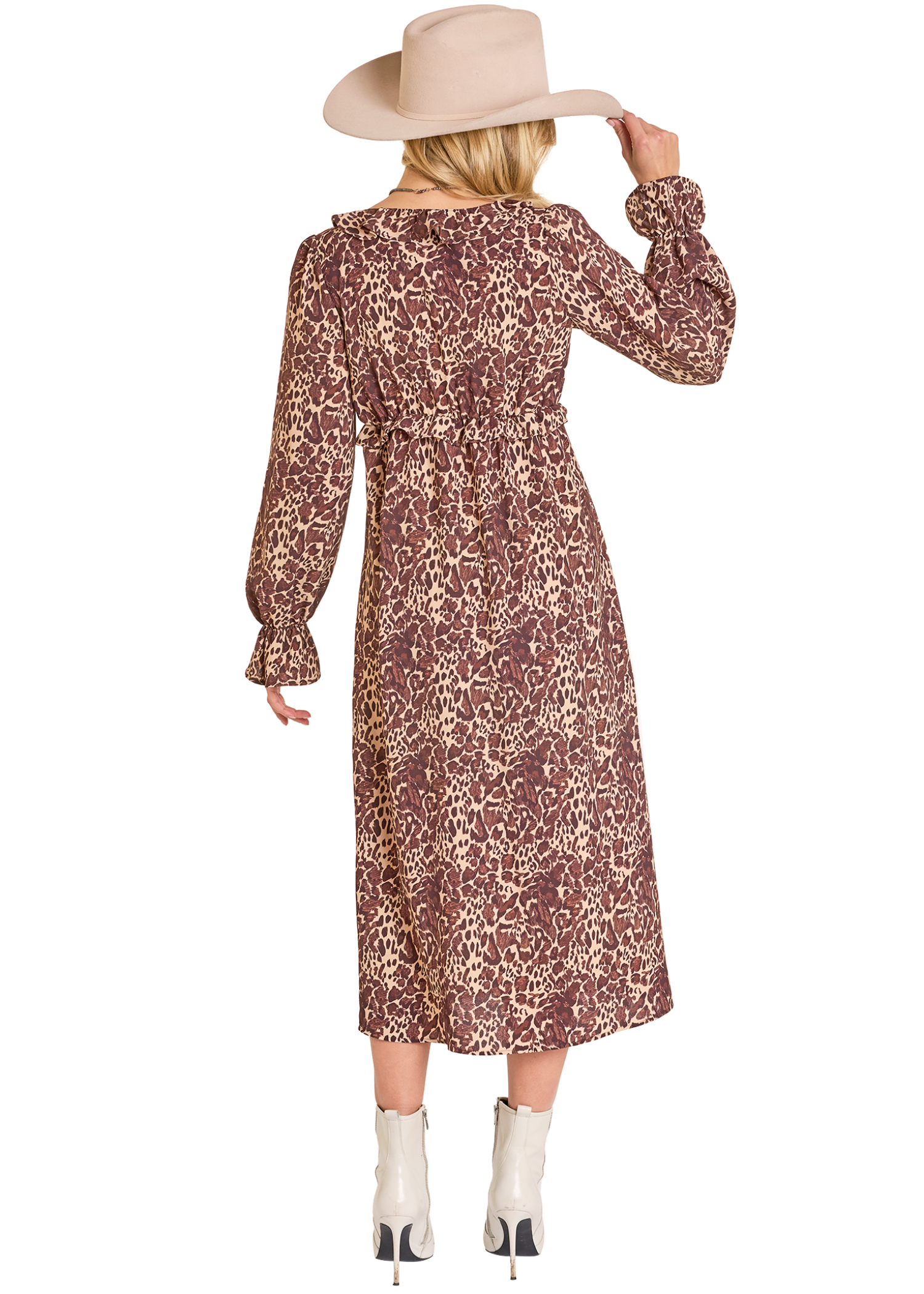 West Desperado Leopard Ruffle Trim Midi Dress