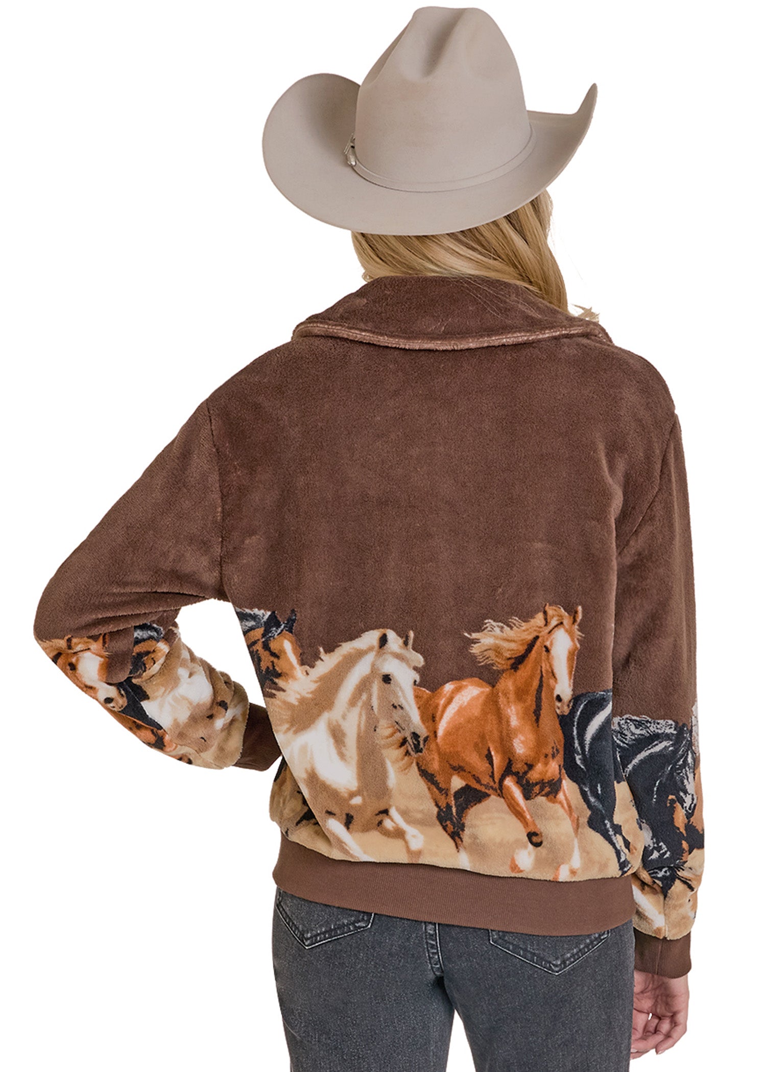 West Desperado Horse Print Border Plush Bomber Jacket