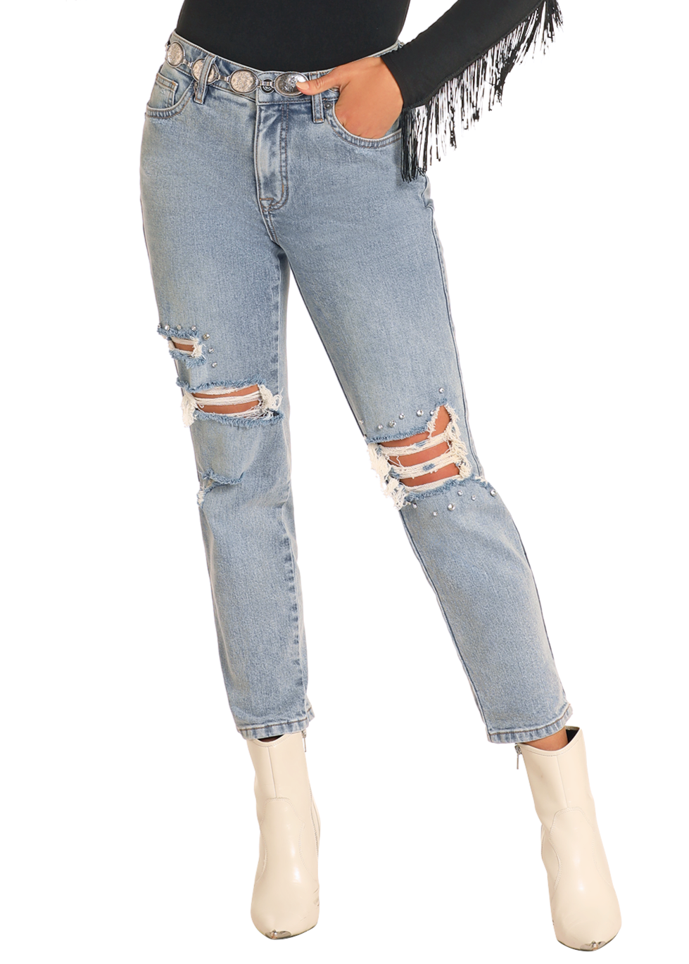 Discover the perfect blend of Western tradition and contemporary style with our women's jeans collection. At Rock & Roll Denim, we've crafted each pair to honor timeless craftsmanship while meeting the demands of your dynamic lifestyle, whether you're working on the ranch or exploring the city.