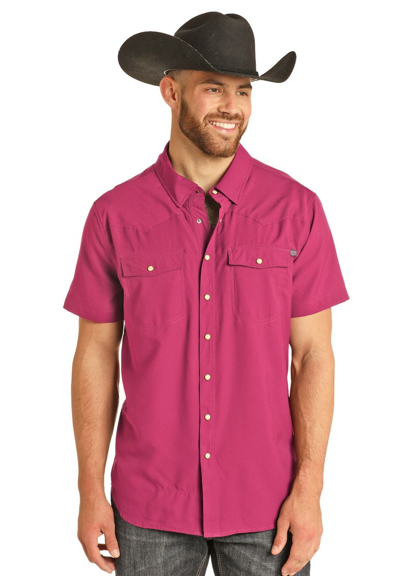 View Camisa TEK Western elástica turquesa de manga corta in Hot Pink
