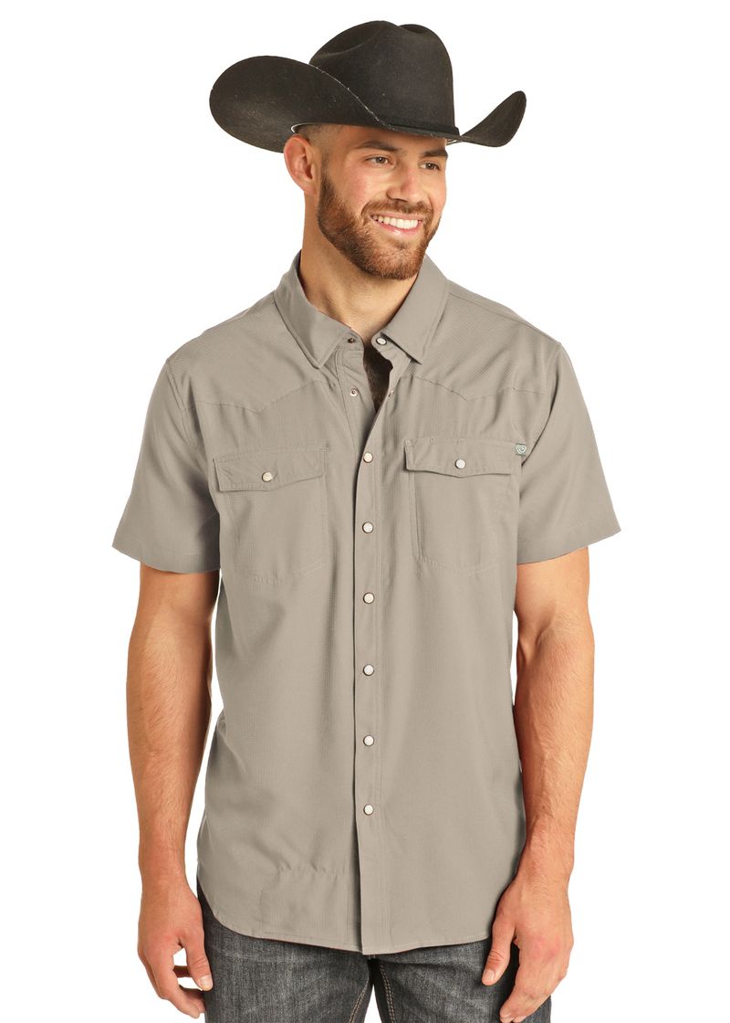 View Camisa de manga corta elástica gris TEK Western in Grey