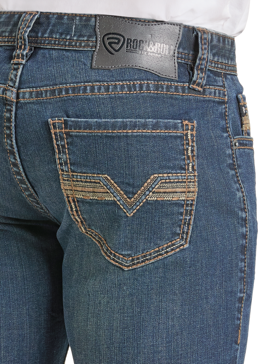 Slim Fit Barb Wire Stitch Pocket Straight Leg Jeans