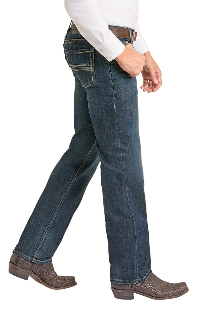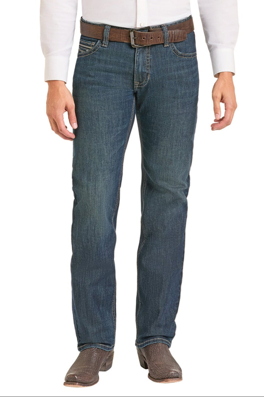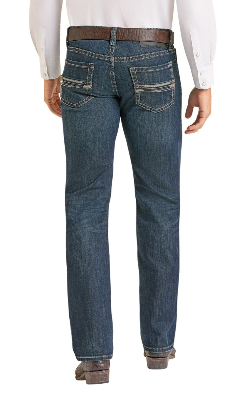 Slim Fit Pleather Pocket Stitch Straight Leg Jeans