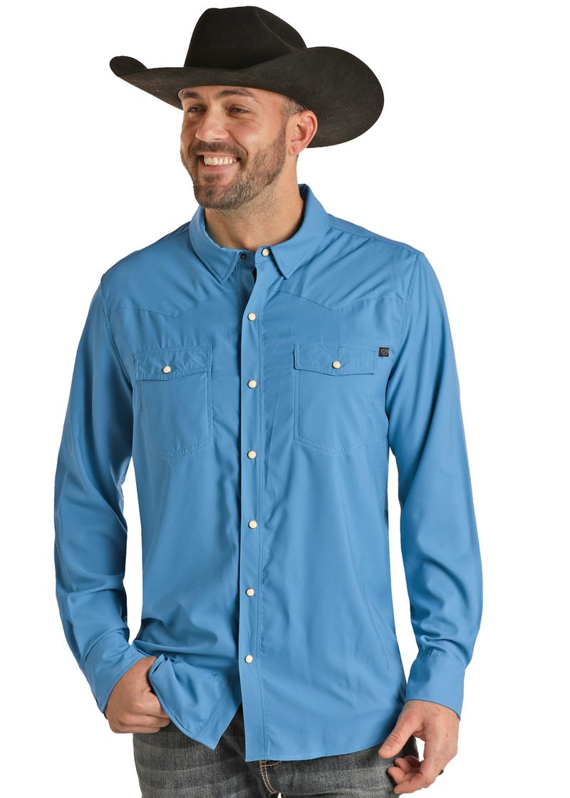 TEK Western Stretch Blue Long Sleeve Shirt