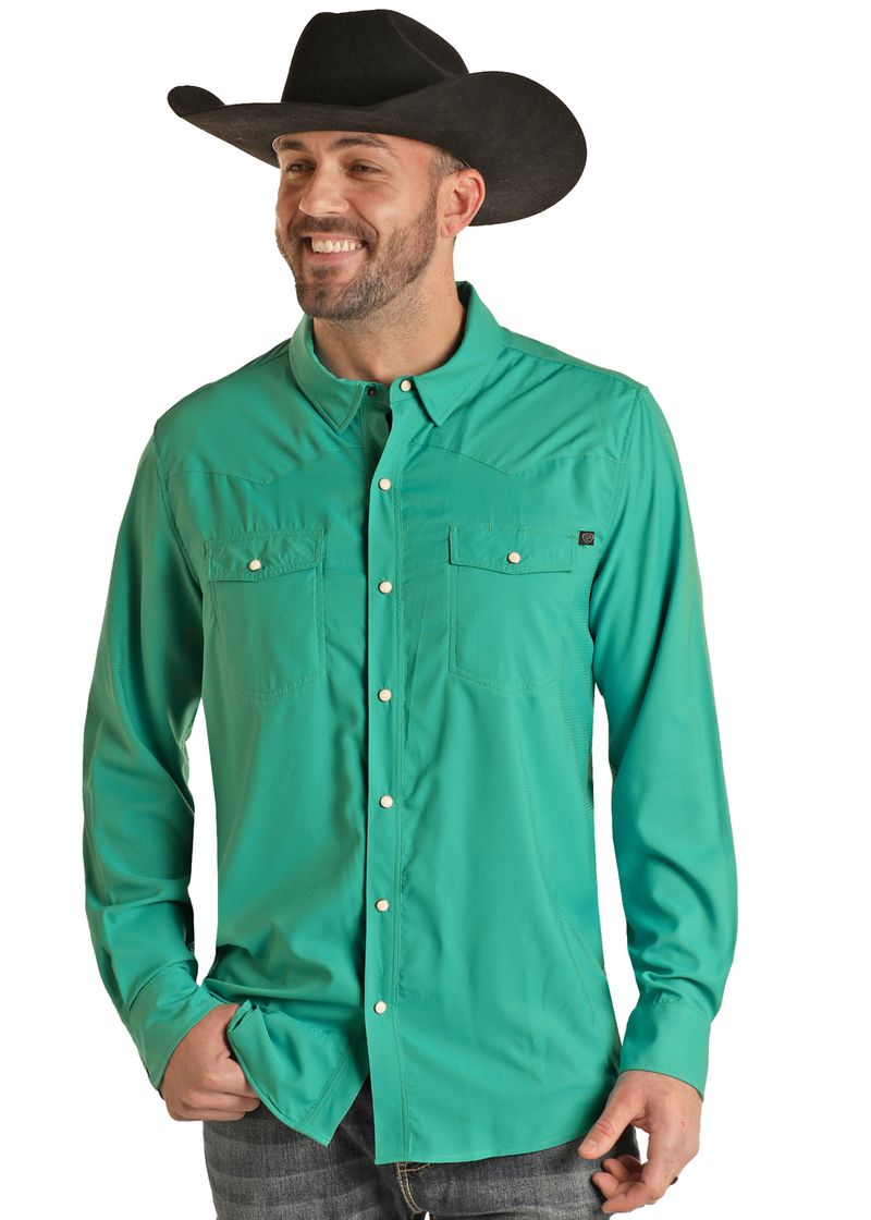 TEK Western Stretch Green Long Sleeve Shirt