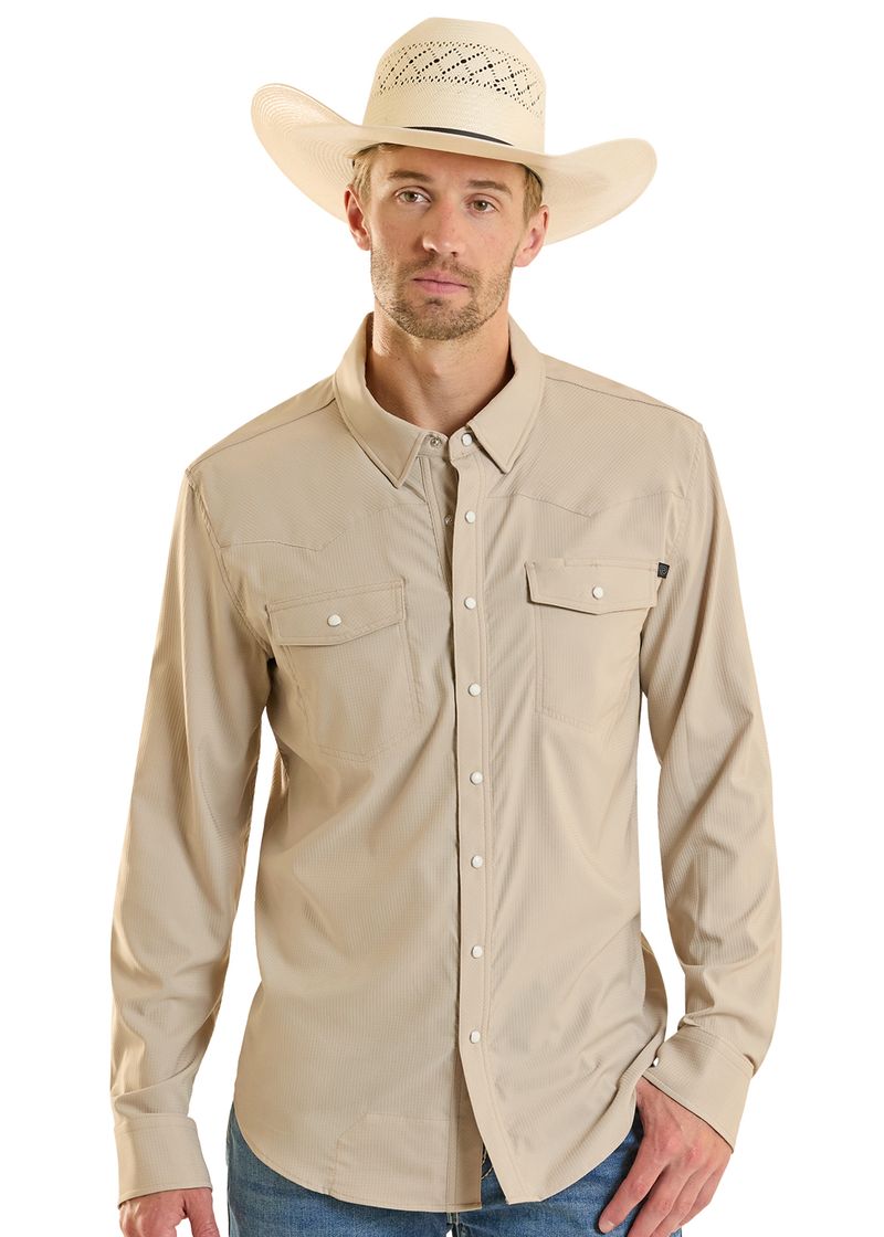 TEK Western Stretch Tan Long Sleeve Shirt